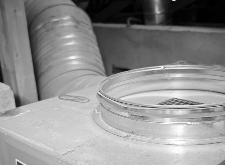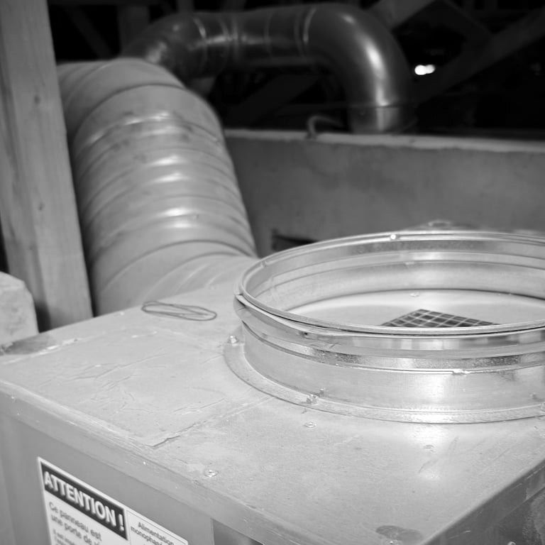 Pose soignée des systèmes de ventilation et équipements sanitaires.